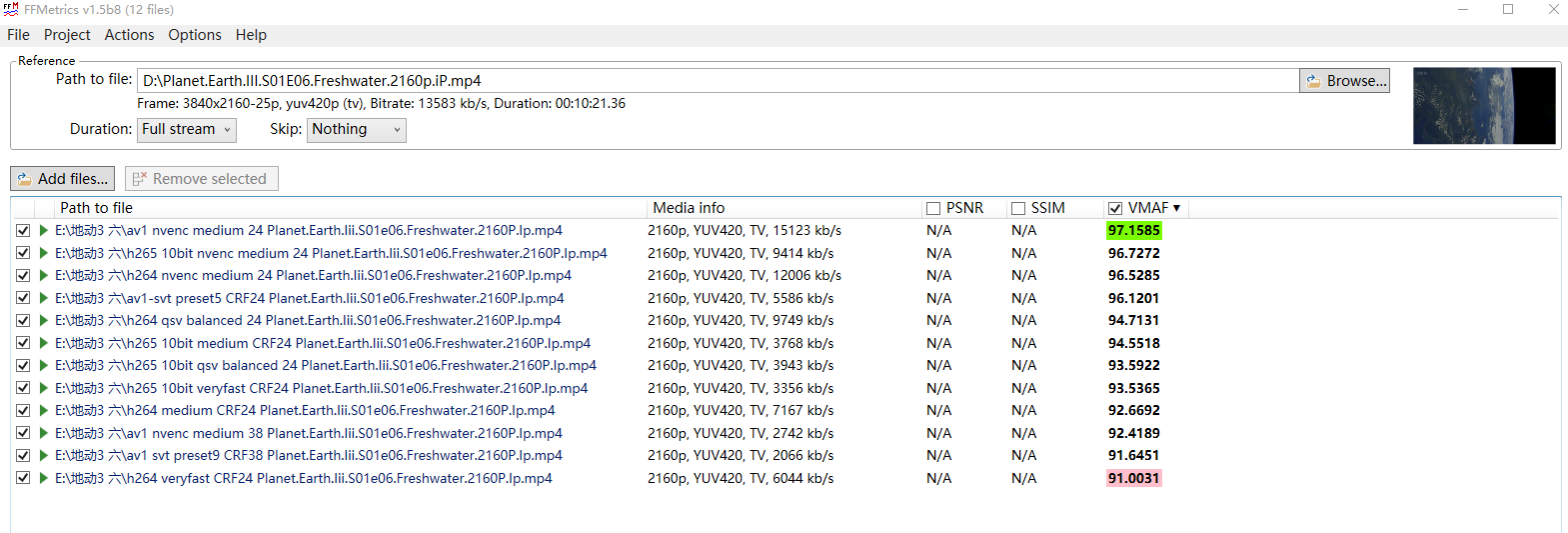 还是说过去你一直在截图视频,肉眼盯帧查画质,没有用软件工具测试过VMAF分数?