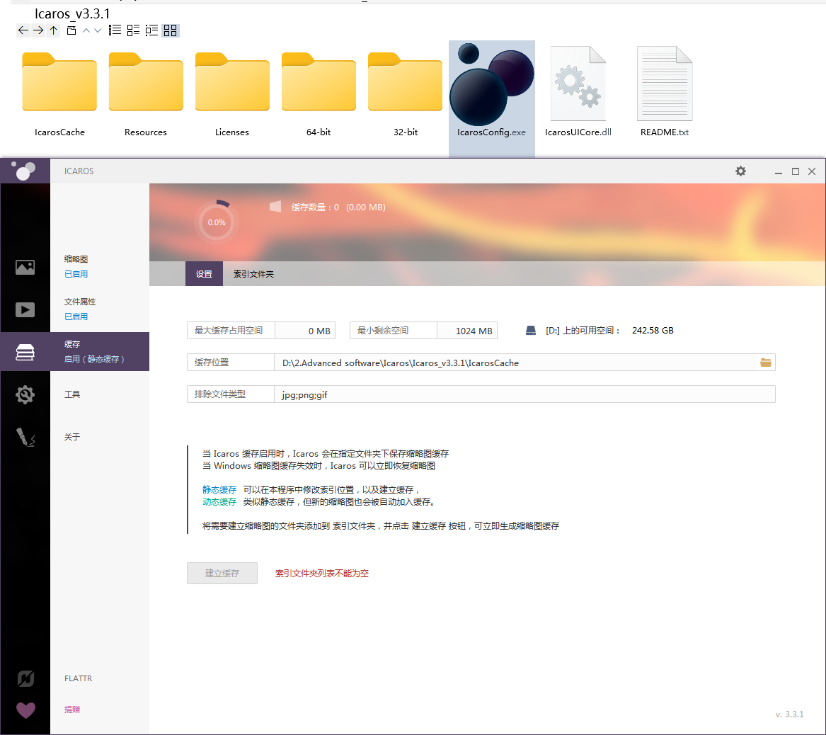 Icaros,不仅能看视频缩略图,还能缓存图片缩略图