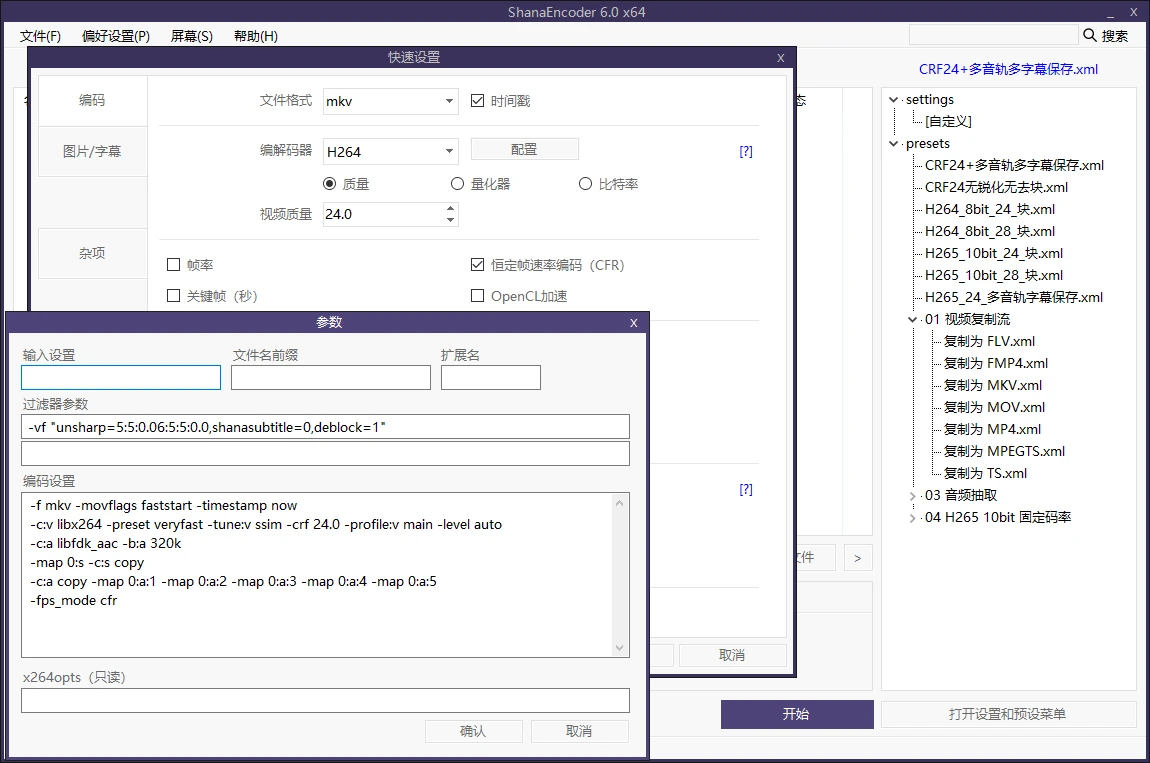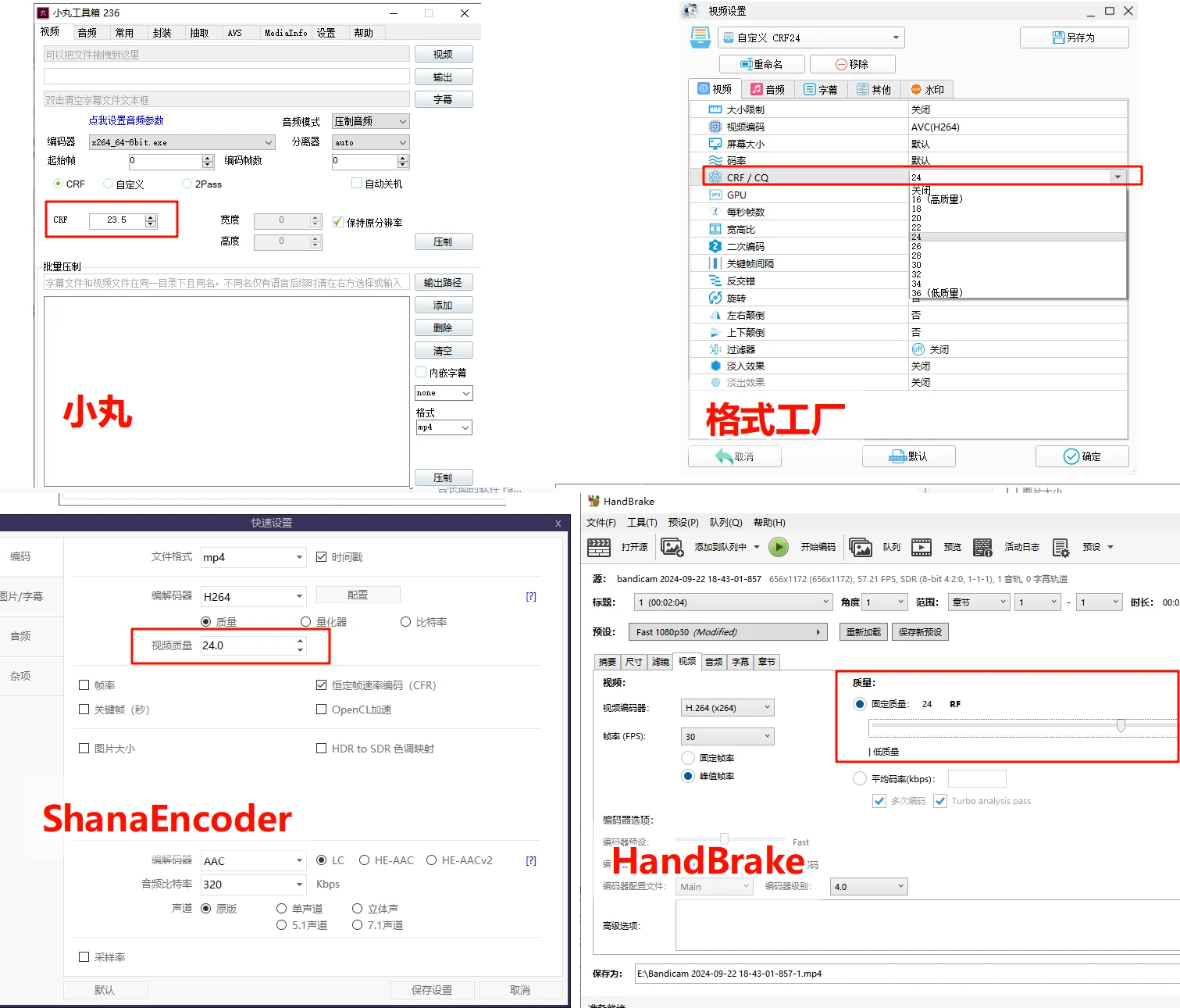 CPU软编:这三款软件都可以支持“-c:v libx264 -crf 24”,没问题。