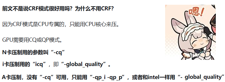 你是否在根据cpu压制时使用-crf24的经验,在显卡压制时也使用了-cq24呢?