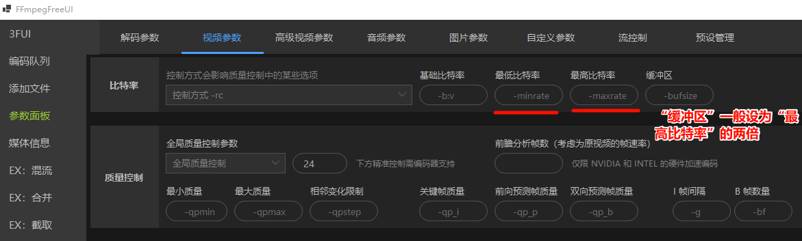 软件把你设置的参数,“告诉”内置在软件中的FFmpeg,让FFmpeg自己压。