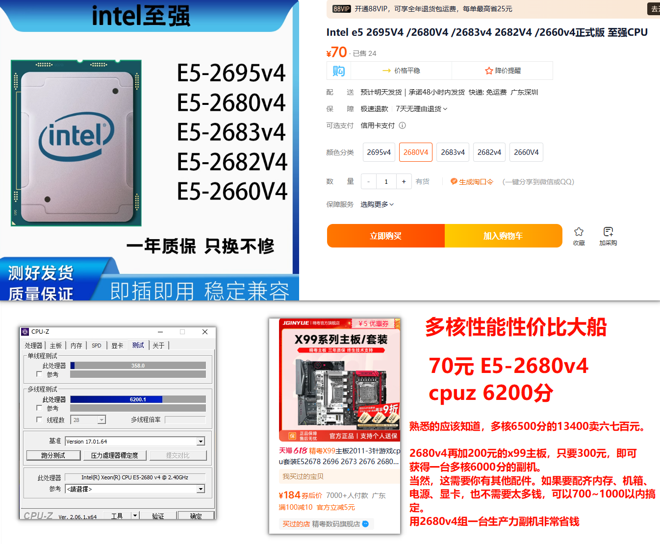 至强2680v4,80元上下,cpuz 6000分,最早出现在2023年。(或者更早?)